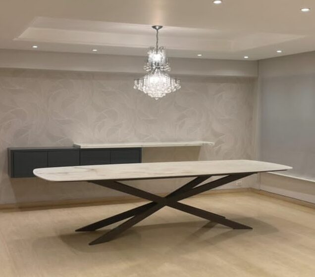 La mesa Spider es una obra maestra de diseño, manufactura artesanal y materiales de alta calidad. Su base de acero, fabricada con tecnología CNC, es un verdadero espectáculo visual que soporta una superficie de piedra sinterizada. La pintura resistente en la base hace que esta mesa sea perfecta para un uso diario y duradero.