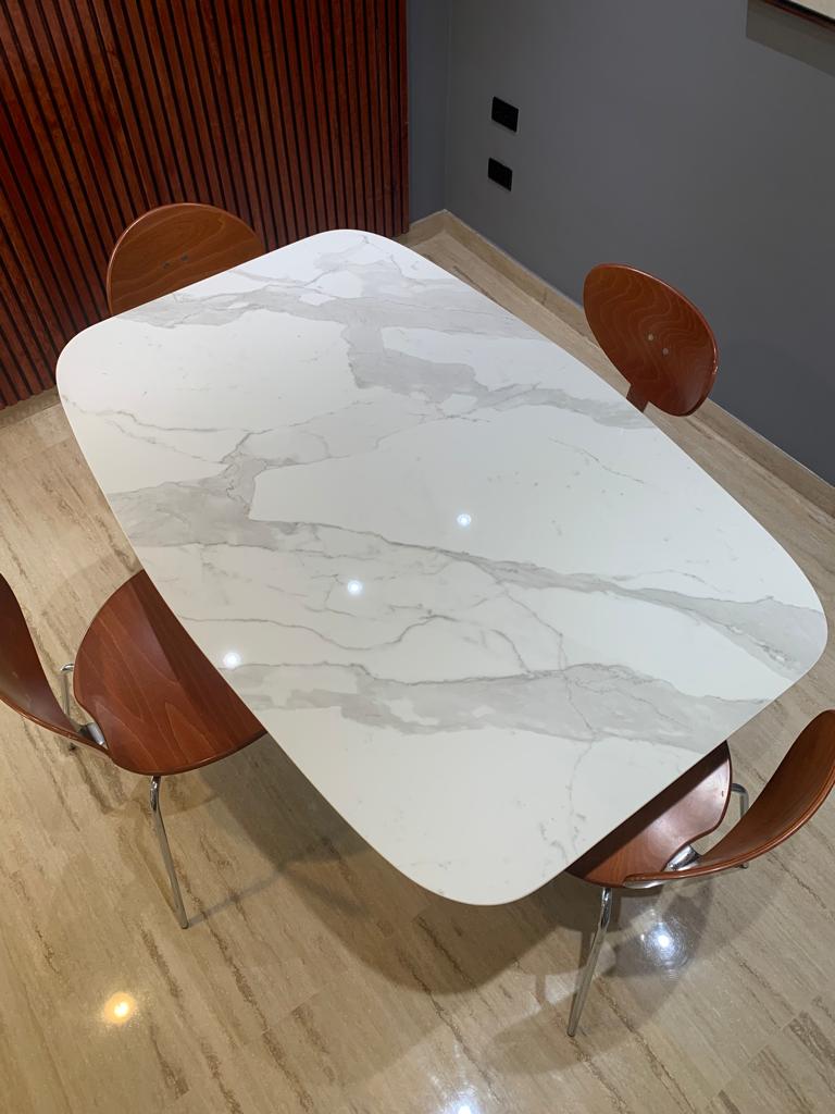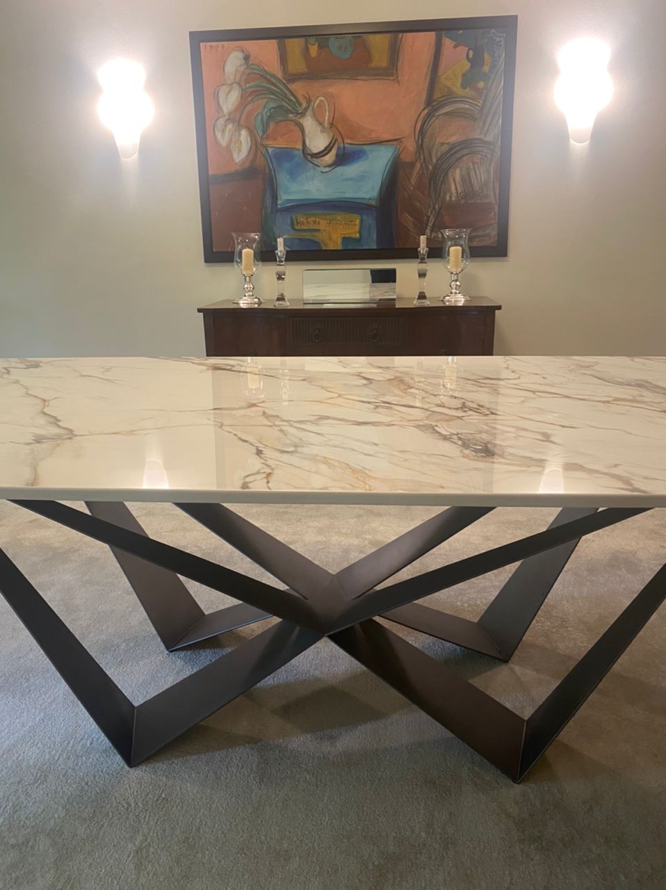 La mesa Skorpio es una verdadera obra de arte en diseño y funcionalidad. Su tope de piedra sinterizada y su base de acero se complementan perfectamente para crear una pieza elegante y resistente que resistirá el paso del tiempo. La superficie de la mesa Skorpio es suave al tacto y resistente a los arañazos, lo que la hace ideal para cualquier ambiente. Además, su base de acero le da a la mesa una solidez y estabilidad sin igual, lo que la convierte en una elección perfecta para hogares y oficinas modernos.